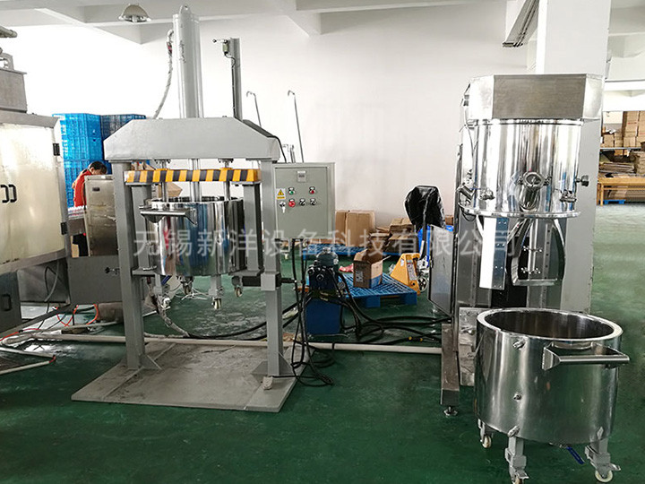 真空行星攪拌機(jī)的特點為:主機(jī)采用行星齒輪減速機(jī)設(shè)計,低噪音,機(jī)械效率高,可節(jié)省動力使用及減少設(shè)備占用空間。該機(jī)器適用于化工、輕工、食品、電池、制藥、建材、農(nóng)藥等行業(yè)所需的多組份固-固相、固-液相、液-液相物料的混合、反應(yīng)、分散、溶解、調(diào)質(zhì)等工藝,如油墨、顏料、粘膠劑、密封膠、封裝膠軟膏、糊狀物料、潤滑脂、油漆、膏狀化妝品、添加物等多種高粘稠物的制備。使用粘度范圍10,000~1,000,000CP左右。攪拌器的形式根據(jù)物料要求可為多層漿葉式、框式、蝴蝶式、外輪式等。和普通攪拌機(jī)相比,它有如下優(yōu)缺點: