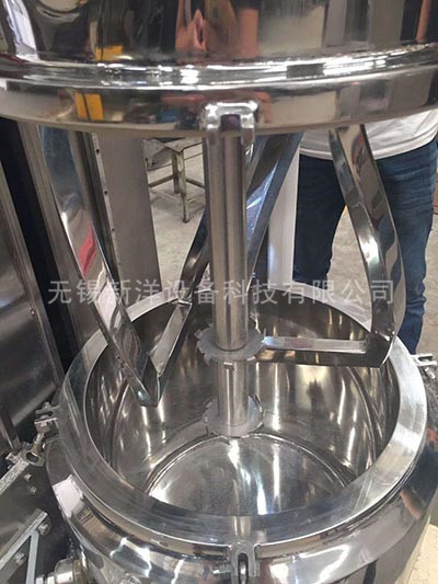 行星分散混合機(jī)有高速、低速、活動(dòng)刮板作攪拌、剪切、刮壁、溶解用。低速運(yùn)轉(zhuǎn)的攪拌錨使物料在密 閉容器內(nèi)上下翻動(dòng)、剪切和混合,高速運(yùn)轉(zhuǎn)的齒形分散盤與混合的物料產(chǎn)生強(qiáng)烈的碰擊和剪切,隨著攪拌錨的旋轉(zhuǎn),行星架上的活動(dòng)刮刀隨著旋轉(zhuǎn),把釜體上的物料完全刮掉,使聚集物完全、徹底地達(dá)到混合、分散、溶解的要求。在其高低速的不同作用下,使物料能夠達(dá)到均勻的混合和分散。